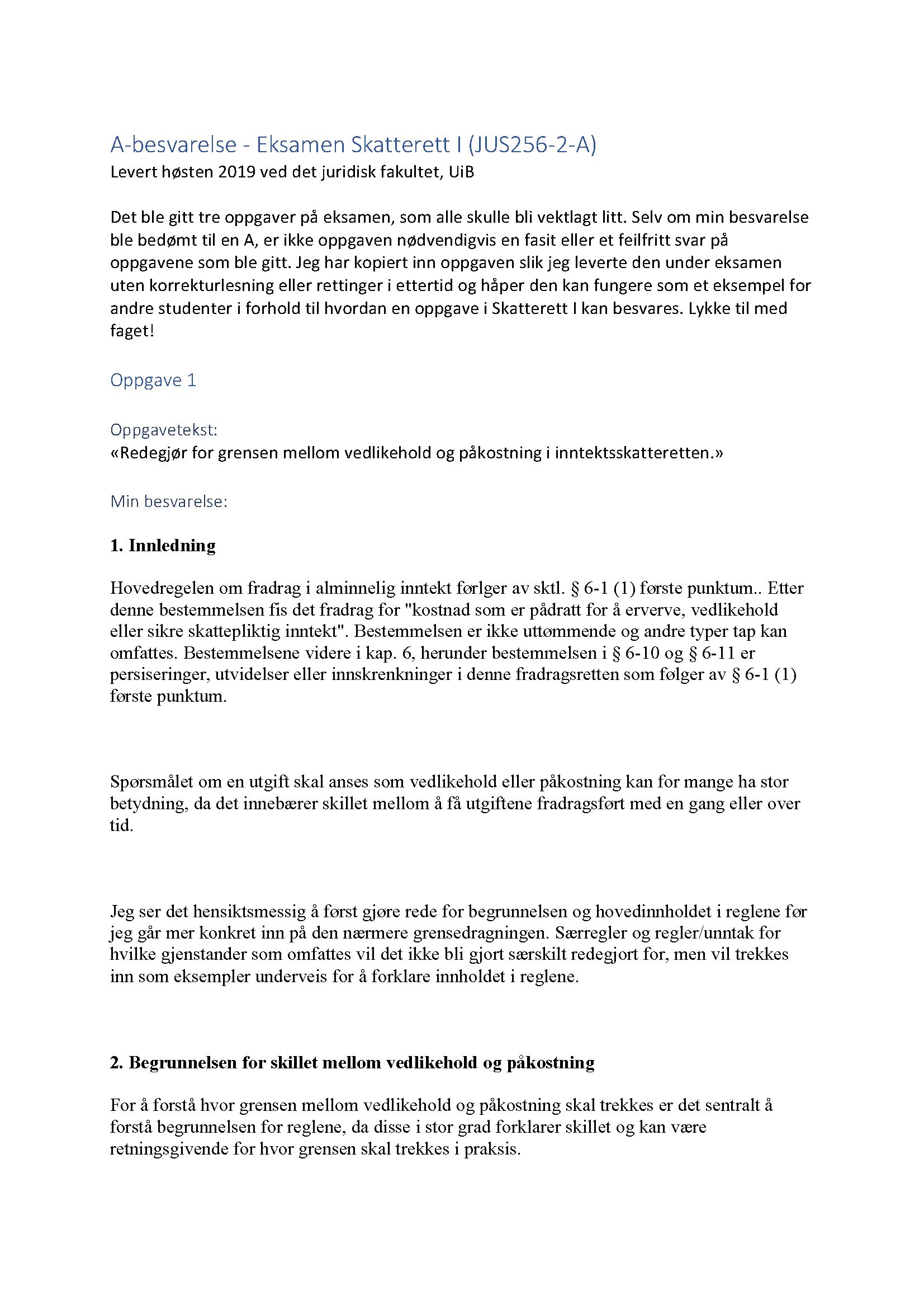 A Besvarelse Skatterett I Hosten 2019 Juss Uib Filefora No