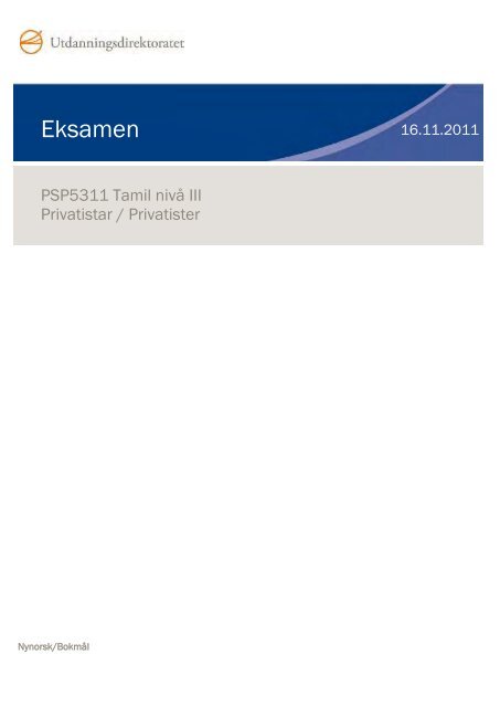 På denne sida vil du finne informasjon om gjennomføring av sentralt gitt eksamen i grunnskulen og i vidaregåande opplæring samt om nasjonale prøver og kartleggingsprøver. Denne sida er ikkje ei totaloversikt over eksamens- og prøvefeltet. Eksamensoppgaver forberedelsesdeler eksamensveiledninger eksempeloppgaver vurderte eksamenssvar eksamensrapporter vurderingsskjema og sensorveiledninger for de.