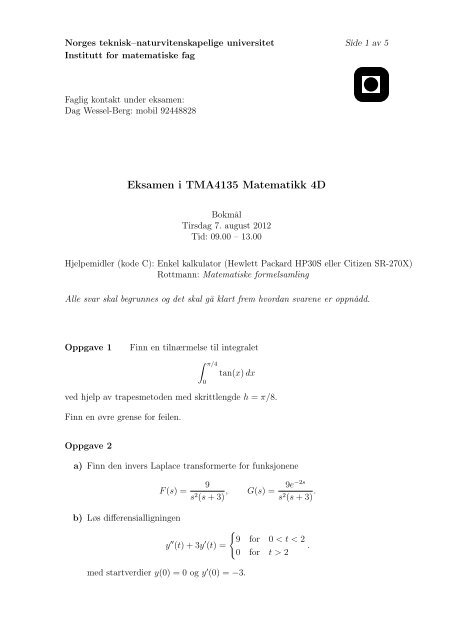 The meetings are joint for TMA4122 and TMA4130. Det kan forekomme feil i løsningsforslagene. Vi får da 150 dL.